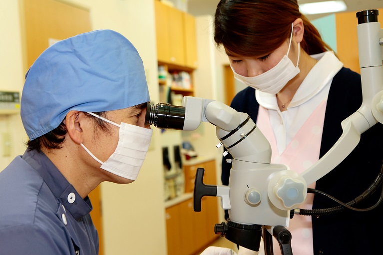 当院では、患部をできるだけ拡大して見られるようにするマイクロスコープや、歯の根っこの汚れをより取り除きやすくする超音波治療器などを導入することで、患者さんにより良い根管治療を実施できるようにしています。